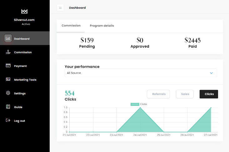 Our goal is to make our relationship with you as transparent as possible; You'll have complete access to tracking links to help you understand how many referrals, sales and clicks you have generated.
